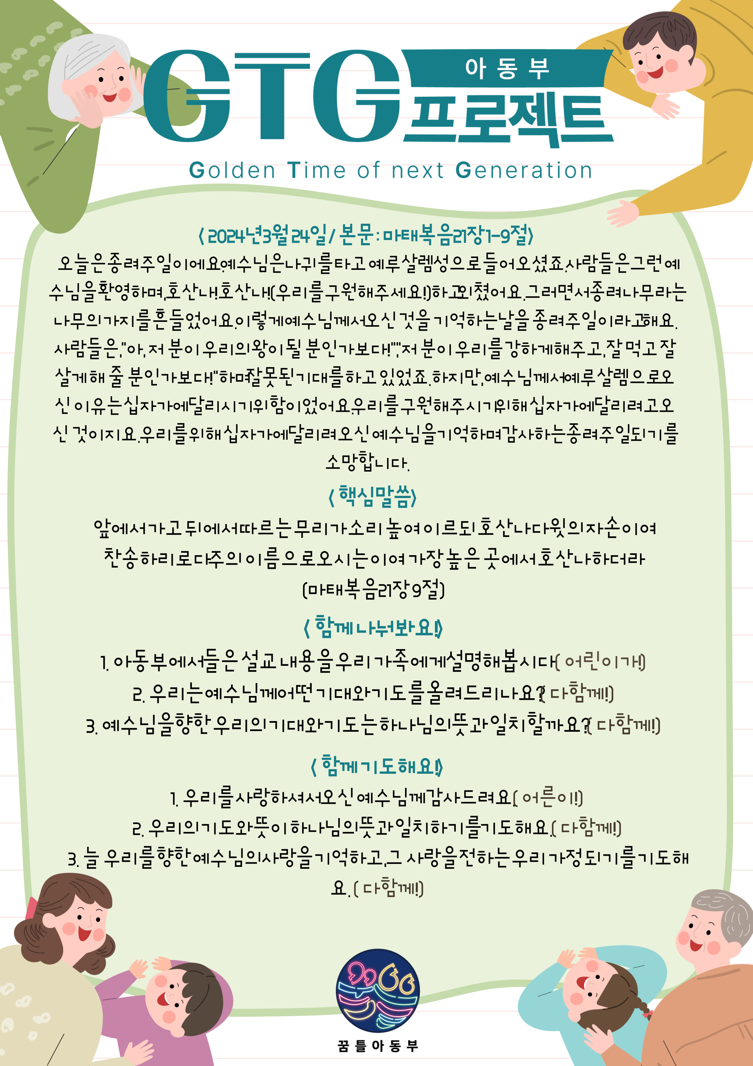 GTG 프로젝트는 온세대가 한 말씀을 보고, 듣고, 읽으며 함께 신앙이 성장해나가는 것을 지향합니다. 각 연령별 수준에 맞는 교안을 통해 신앙이 성장할 수 있도록 돕겠습니다.