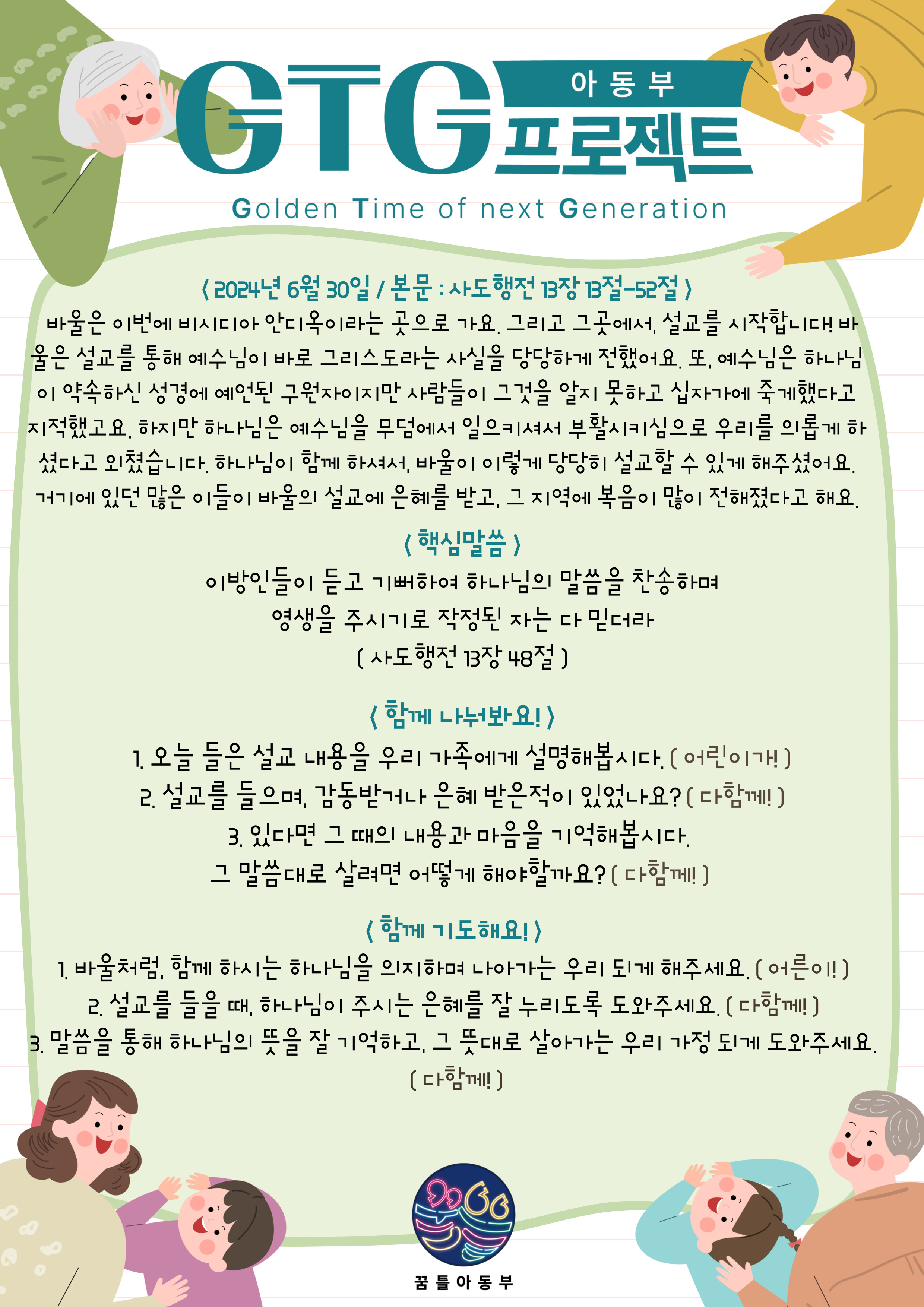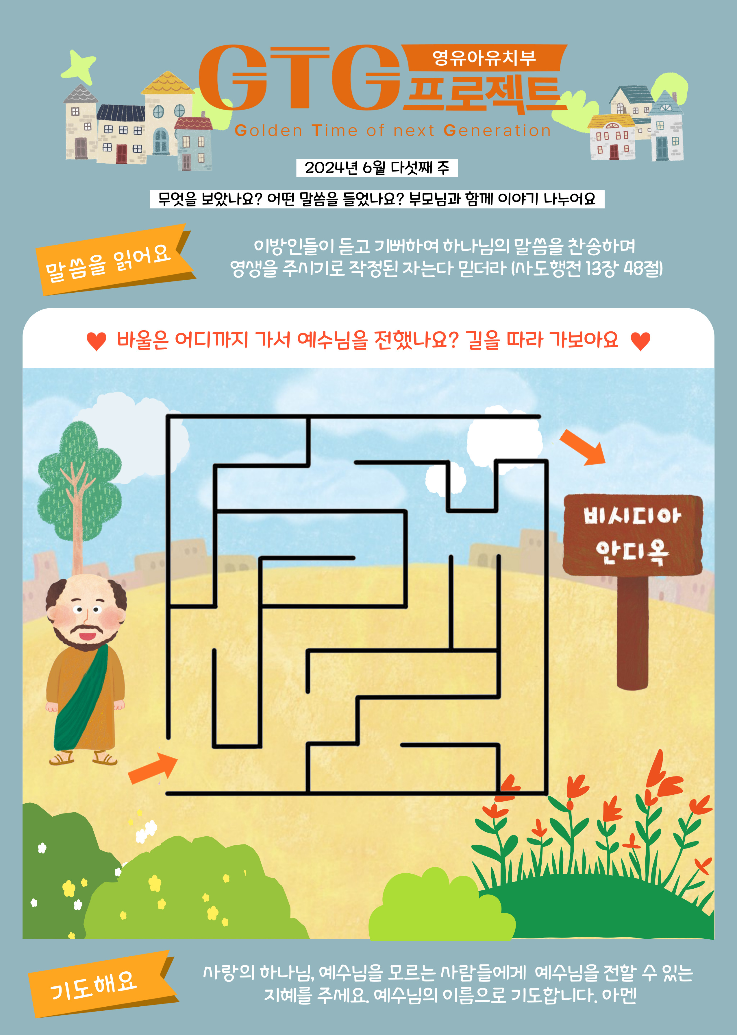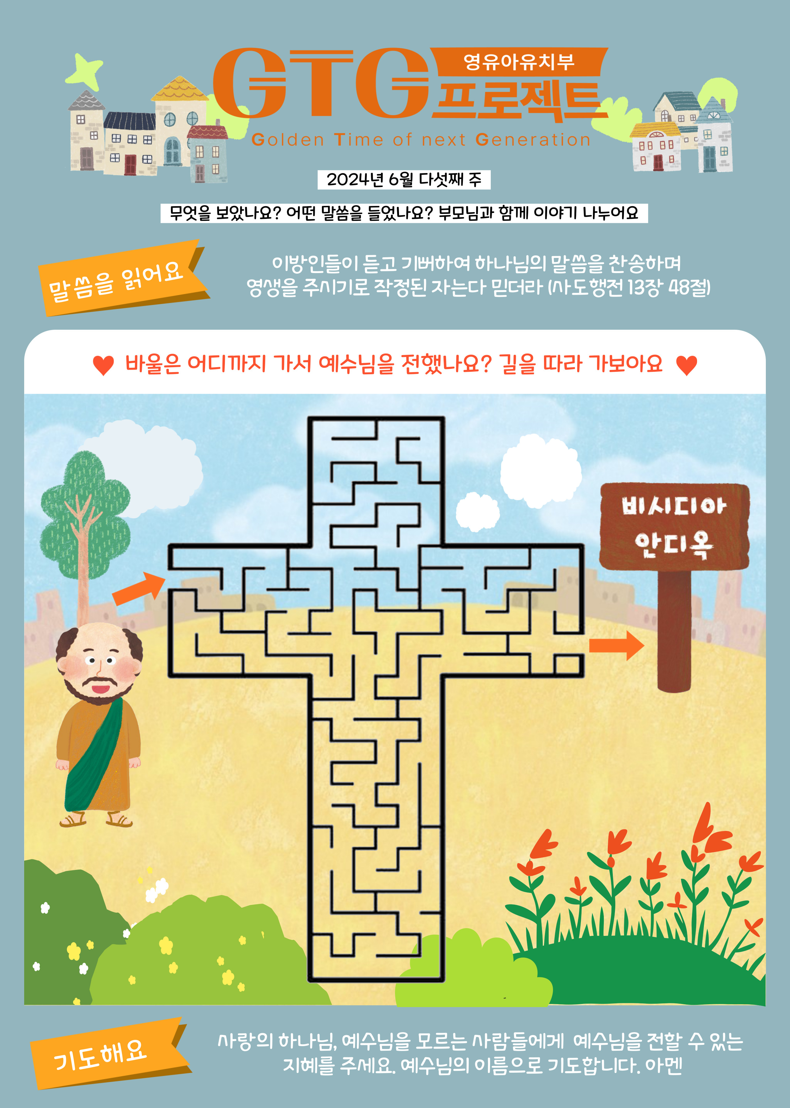 GTG 프로젝트는 온세대가 한 말씀을 보고, 듣고, 읽으며 함께 신앙이 성장해나가는 것을 지향합니다. 각 연령별 수준에 맞는 교안을 통해 신앙이 성장할 수 있도록 돕겠습니다.